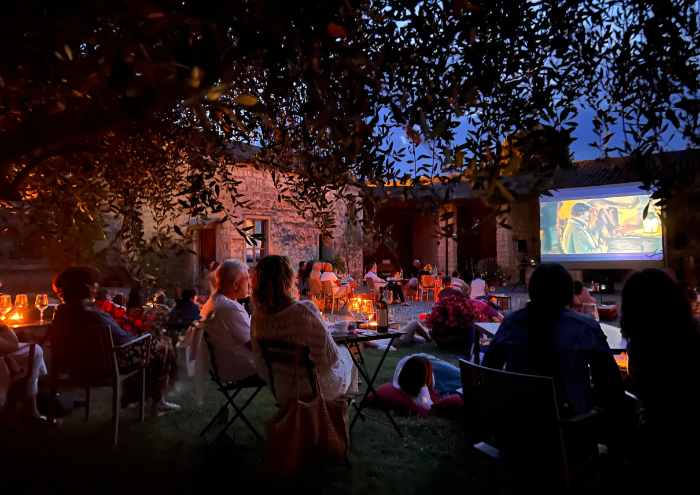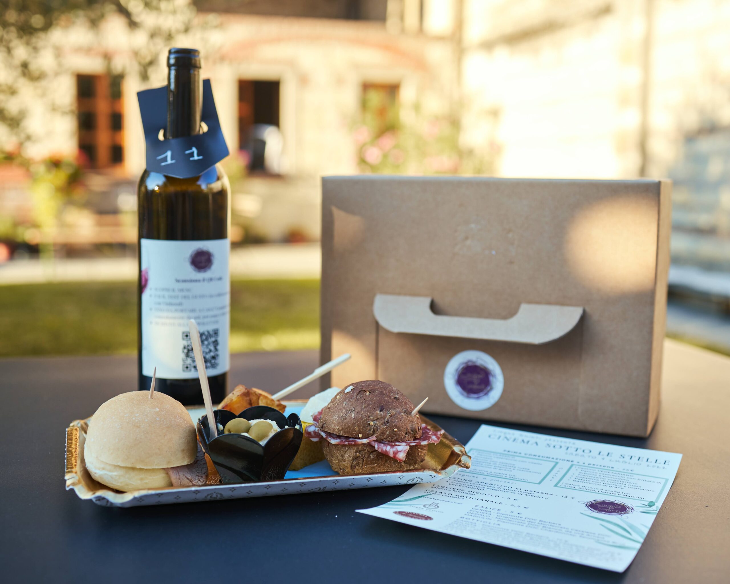 Un’esperienza semplice ma magica, perfetta per coppie, amici e famiglie, dove il cinema incontra il vino e la convivialità.