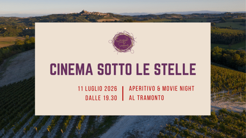Cinema sotto le Stelle da Cinque Quinti, una serata da vivere all’aria aperta, con il sole che tramonta sulle colline e lo schermo che si accende tra calici di vino e popcorn.