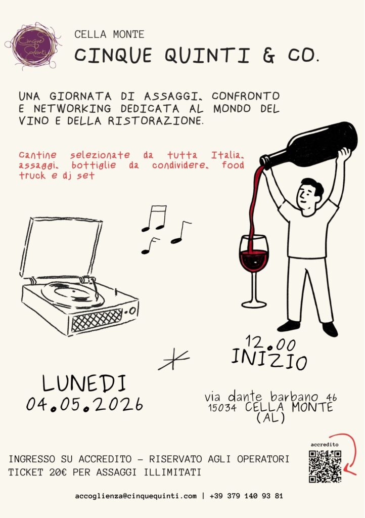 Cinque Quinti & Co nasce come una giornata pensata esclusivamente per gli operatori di settore: produttori, ristoratori, sommelier, giornalisti e influencer, con l’obiettivo di creare uno spazio di incontro, dialogo e confronto autentico.